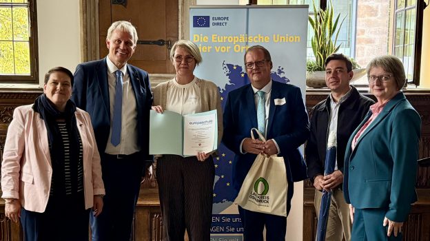 Am 22. September 2025 wurde der Marienhausschule eine besondere Ehre zuteil: In einer feierlichen Zeremonie im historischen Friedenssaal des Osnabrücker Rathauses erhielt sie das Siegel „Europaschule in Niedersachsen“. Damit gehört die Schule nun offiziell zu einem Netzwerk von Bildungseinrichtungen, die sich in besonderer Weise für europäische Werte, interkulturelles Lernen und internationale Zusammenarbeit engagieren.