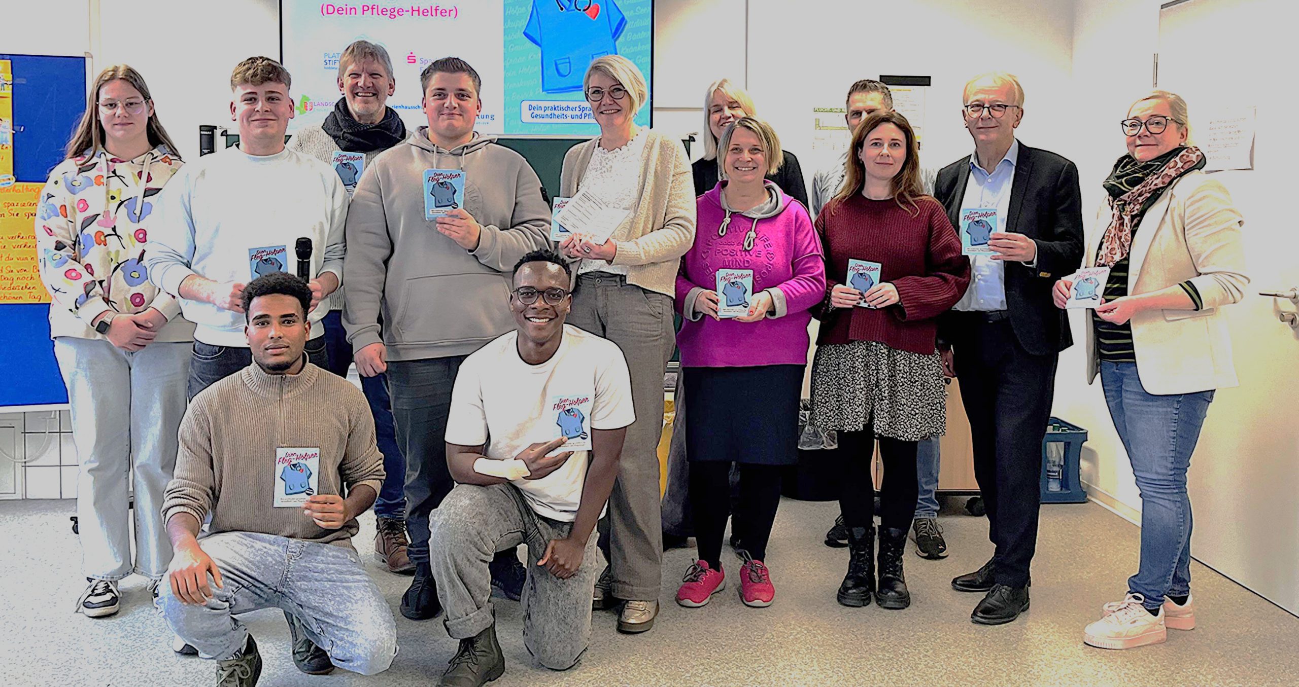 Vor längerer Zeit haben die PFL 23-Klassen ein plattdeutsches Wörterbuch für den Pflegealltag erstellt. Am 3. Dezember war es dann so weit: Die Emsländische Landschaft übergab die professionell gedruckten Hefte: Dien Fleg_Hölpers.